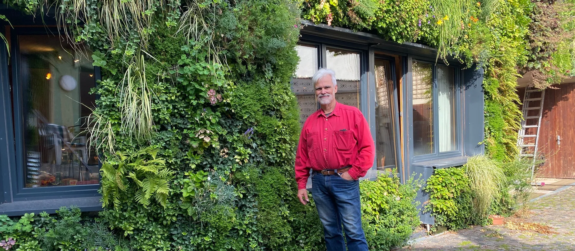 Hitze in Innenstädten wird immer mehr zum Problem. Helfen können begrünte Fassaden an Gebäuden. Eines der wenigen Privathäuser mit einem vertikalen Garten steht in Karlsruhe.